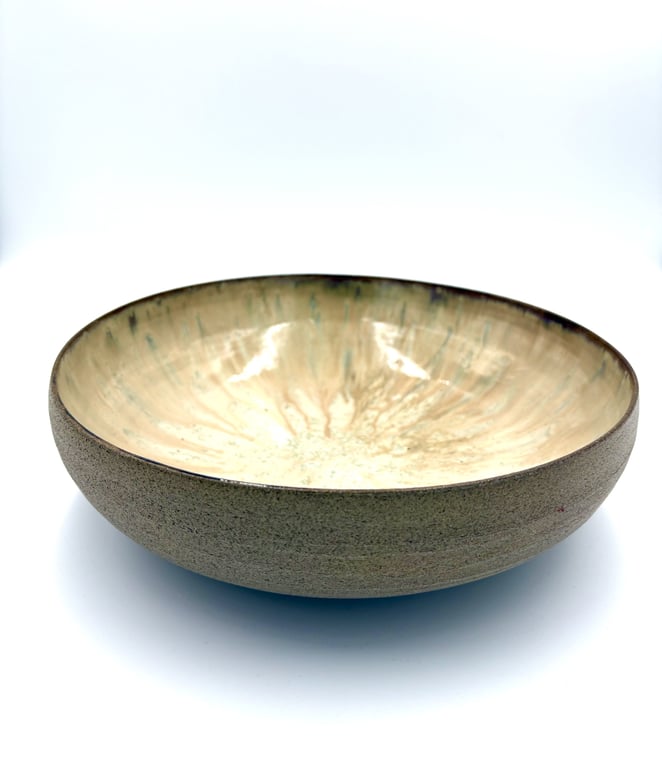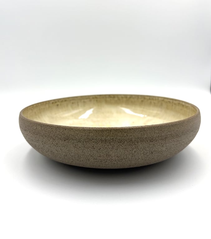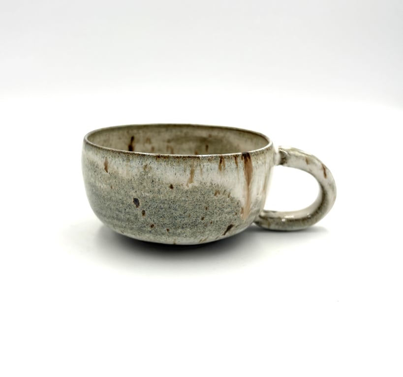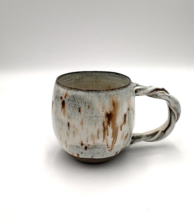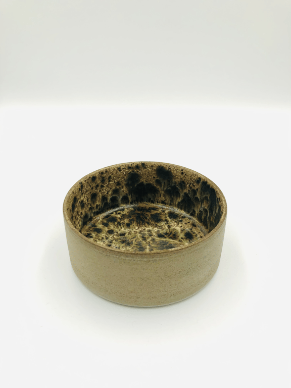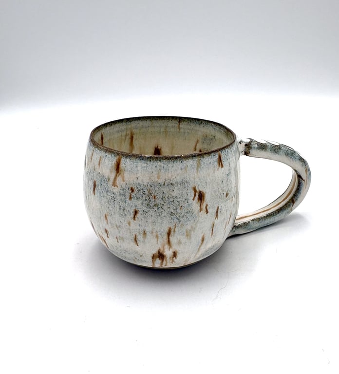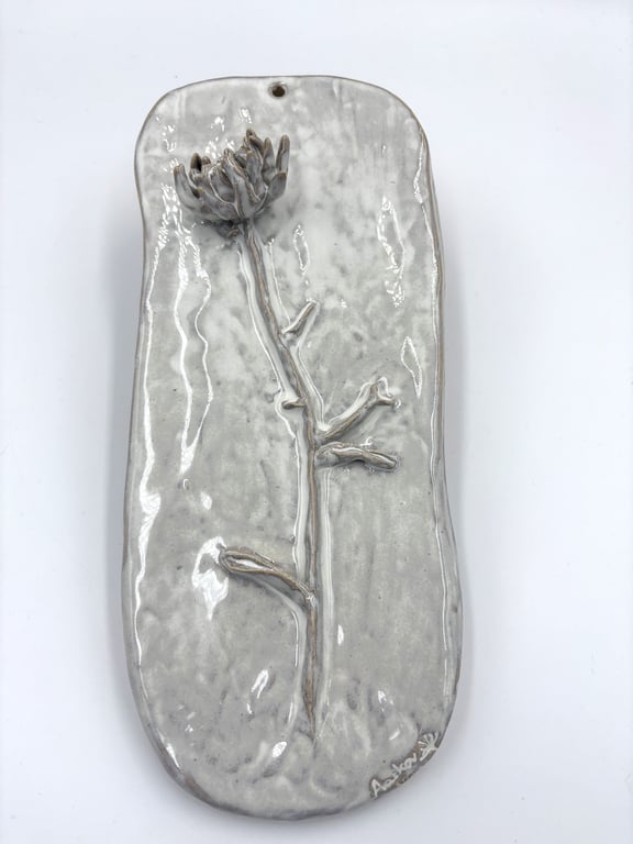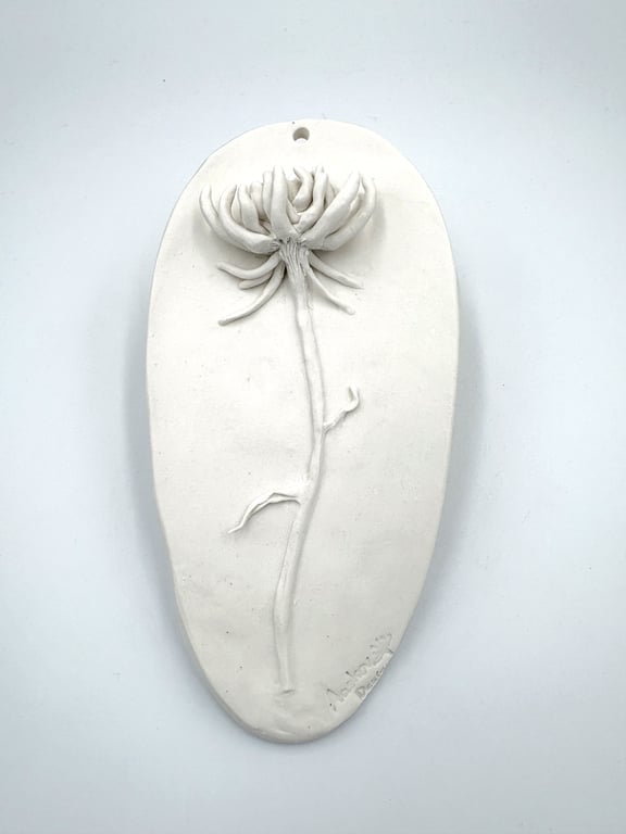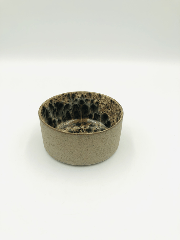 Rund keramisk vægholder til fyrfadslys med tekstureret, prikket mønster i hvide og grå nuancer.